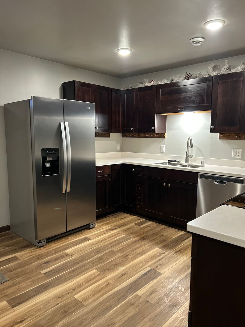 This 2-bedroom, 1-bath duplex offers approximately 1,700 square feet of comfortable living space with an open floor plan and vaulted ceilings. The home features modern solid wood cherry cabinets, solid surface countertops, and a spacious layout ideal for both everyday living and entertaining. Situated on a large lot, the property provides ample outdoor space while maintaining privacy. Rent is $1,900 per month. Tenant is responsible for electric. Pets may be considered with approval and a pet deposit. Call today to schedule a showing at 907-799-9947.